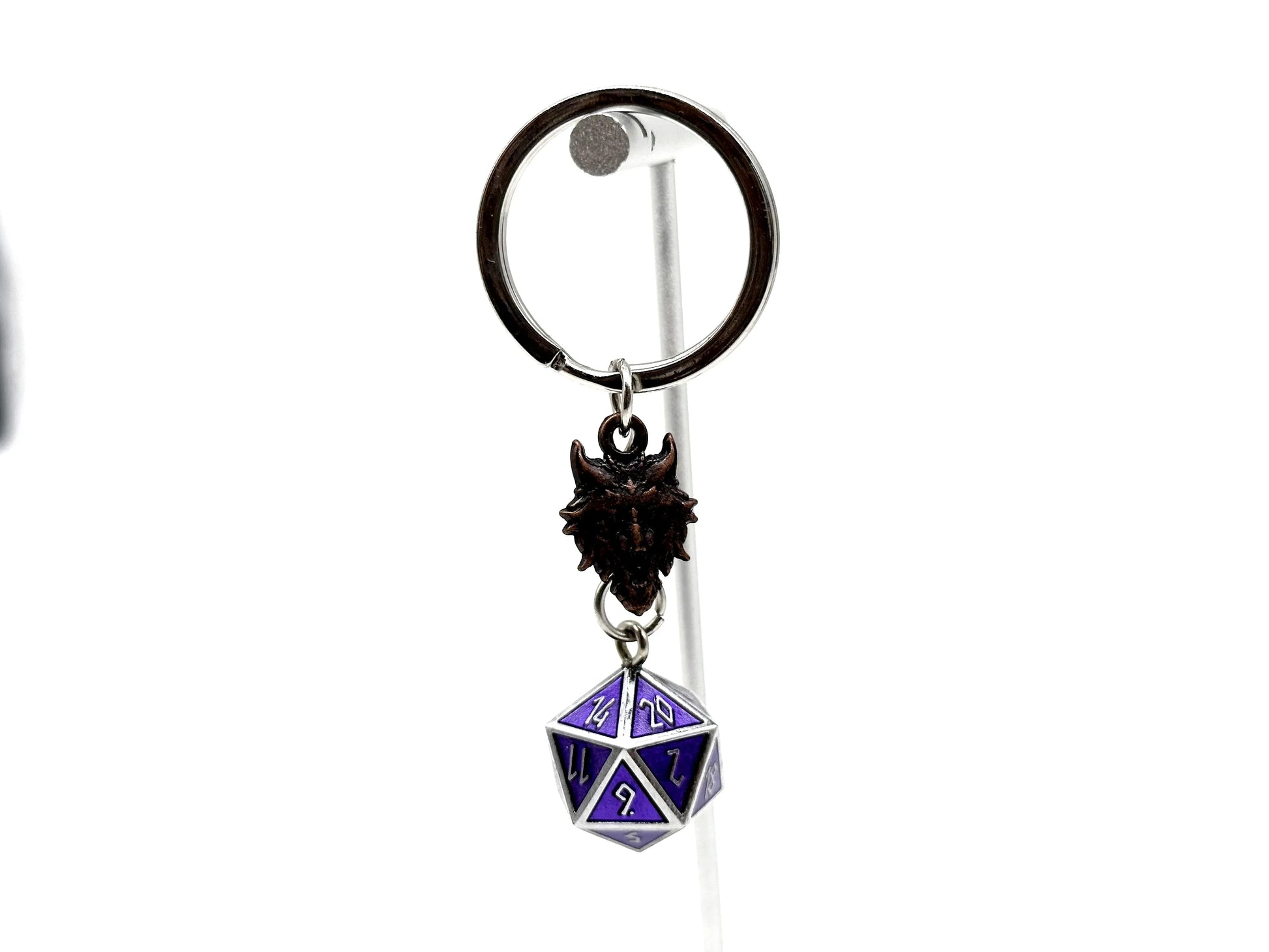 The Norse D20 Keychains are more than mere accessories; they serve as a bridge to the fabled realms of old and the convenience of the modern world. The regal purple hue evokes a sense of mystery and prestige, transporting you to the heart of Norse sagas and tales. The font style, reminiscent of enigmatic runes, adds an aura of authenticity and intrigue to your everyday essentials.