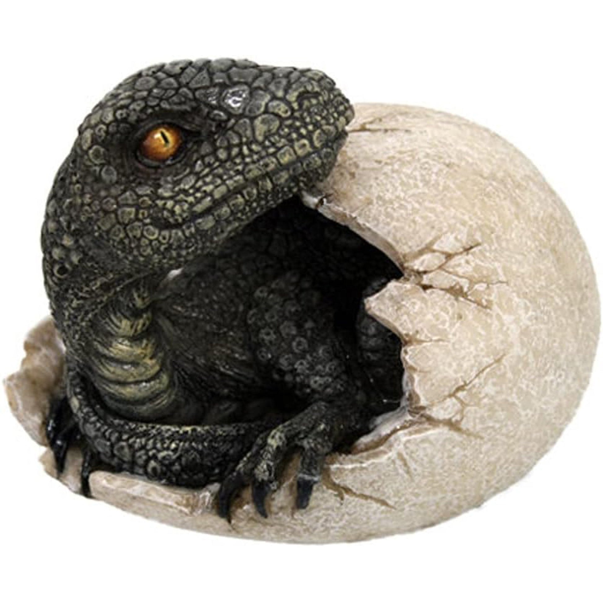 Features: Realistic detailing, textured egg shell, dynamic baby raptor pose
